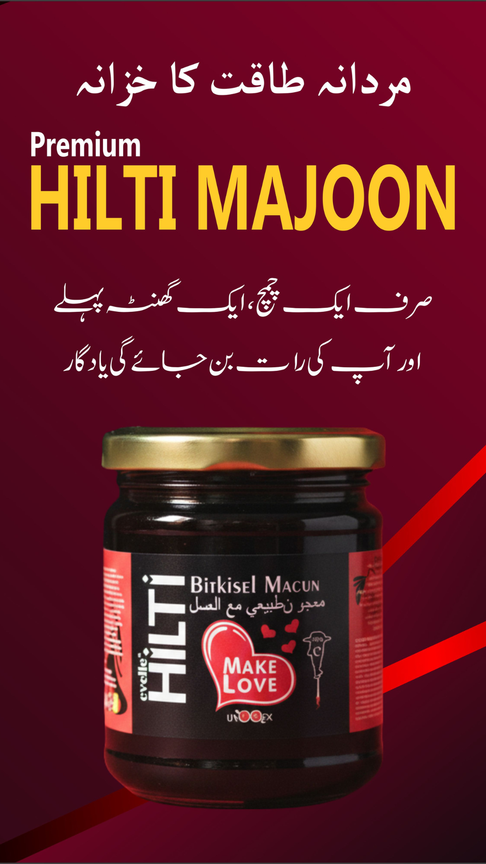 ہلٹی  معجون ترکی کا نمبر 1 ہربل معجون ہے جو مردوں اور خواتین کے لیے ایک قدرتی افروڈیزیاک کے طور پر استعمال ہوتا ہے اور اس کے کوئی مضر اثرات نہیں ہیں۔ خاص طور پر، ہلٹی معجون HILTI Majoonکو ترکی کی وزارت خوراک سے منظوری حاصل ہے۔ یہ 100% قدرتی پراڈکٹ ہے جو جڑی بوٹیوں کے اجزاء پر مبنی ہے۔